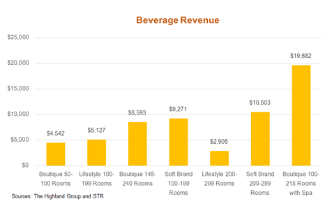 这些样本的营业净收入表现令人鼓舞。一个重要的贡献者是饮料部门。下图显示了七个样本的饮料销售额,除了“生活方式200-299”房间样本之外,其收入占8%至15%。其中三份样品每饮料收入可获得超过8,000美元。饮料销售直接丰富了这些酒店的底线。也为客人创造了一个“积极而有趣”的场所,增强了整体市场地位。